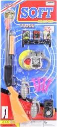 Ez az akciószett örömet szerez minden kis kalandjátékkedvelőnek. Fő eleme egy felhúzható műanyag puska, amely tapadókorongos nyilakat lő – biztonságosan tapadnak a sima felületekre. A csomagban találsz továbbá gránátokat, rádió-adóvevőt, bilincset, jelvényt és célkorongot a pontosság gyakorlásához.
