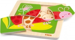 Ez az egyszerű, katicás fa kirakó remek első puzzle a kisgyermekeknek. A masszív, sima darabok jól kézbe illenek, és könnyen behelyezhetők a keretbe. Az élénk színű motívum játékra ösztönöz és segíti a koncentrációt.