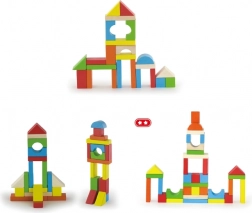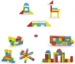 Ez a fából készült építőkészlet végtelen lehetőséget kínál az alkotásra. A 80 különböző alakú és színű darabbal a gyerekek könnyedén építhetnek egyszerű házaktól egészen összetettebb struktúrákig. Ez nemcsak játék, hanem kiváló eszköz is a gyerekek finom motorikus és kognitív képességeinek fejlesztésére.
