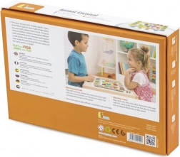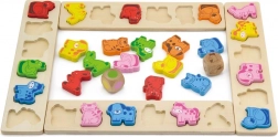 Szórakoztató fa játék 3 éves kortól, amely fejleszti a színek és állatok felismerését, edzi a gyors gondolkodást és reakciókat, valamint támogatja a nyelvi, számolási és csapatmunkához kapcsolódó készségeket. A kiváló minőségű rétegelt lemezből és bükkfából készült készlet 4 táblát, 36 állatfigurát és két dobókockát tartalmaz – egy színeset és egy állatosat.