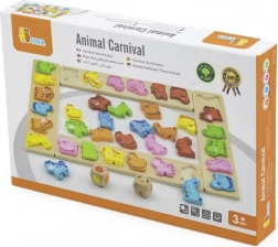 Fedezzétek fel a kreatív világot az Állatkák karneválja játékkal – egy fa oktatójátékkal, amely egyesíti a tanulást és a szórakozást. A színes, masszív elemek kis gyerekkezekhez készültek, és támogatják a finommotorikát, a koncentrációt és a logikus gondolkodást. A különféle játékváltozatoknak köszönhetően a gyerekek sosem unatkoznak.
