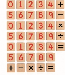 - 40 darab mágnes, amely számokat és matematikai szimbólumokat tartalmaz.