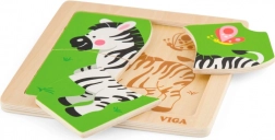 A VIGA márkájú zebra mintás fa puzzle ideális didaktikai játék gyermekek számára, amely fejleszti a motoros készségeket és a kognitív gondolkodást a játékos tanulás által.