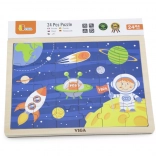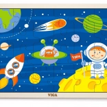 A VIGA fa űr témájú kirakója már egészen kicsi kortól örömet szerez a felfedezésben. A rakétát, asztronautát és bolygókat ábrázoló színes illusztrációk természetes módon támogatják a formák és színek felismerését, valamint a kéz–szem koordináció fejlődését. A kirakott puzzle mérete kb. 27,5 × 20 cm, így jól elfér az asztalon vagy a gyereksarokban.