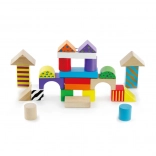 Változatos formák – kockák, hengerek, ívek és tetők – serkentik a fantáziát, és támogatják a finommotorikát és a térbeli gondolkodást.