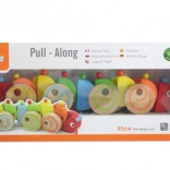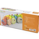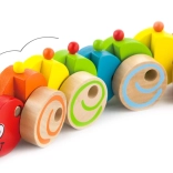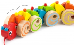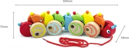 Ez a vidám fa hernyó ideális játék a totyogóknak. A sokszínű szegmensek haladás közben mozognak és forognak, ami sétára és aktív játékra ösztönzi a gyerekeket. A masszív szerkezet és a sima élek biztonságos használatot garantálnak a kis kezekben.