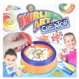 Ez a szórakoztató, kreatív készlet egyedülálló módot kínál a gyerekeknek színes műalkotások készítésére. Az egyszerű pörgetés és festékcseppentés elvének köszönhetően látványos spirálok és absztrakt hatások jönnek létre, amelyek elbűvölik a gyerekeket.