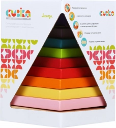 A Cubika márka ökológiai, fa játékokat kínál precíz kidolgozással és tetszetős dizájnnal. A Színes piramis egy 9 darabból álló kirakójáték, amely piramis formára rakható össze. Ez a játék nemcsak szórakoztató módon fejleszti a szenzomotoros képességeket, hanem logikai gondolkodást és kreativitást is.