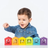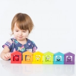 A hat házikó és színes lakóik párosításra és válogatásra ösztönzik a gyerekeket. Természetes módon sajátítják el a színeket, miközben fejlődik a logika és a figyelem.