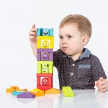A Kubika Színes házikók fa építőkészlet végtelen alkotási lehetőséget kínál a gyerekeknek. Az elemekből könnyedén építhetnek házikókat, tornyokat és kisebb építészeti egységeket, míg az emotikonos kockák érzelmeket és történeteket visznek a játékba. Minden házikónak azonos színű lakója van, ami támogatja a színek és a válogatás természetes tanulását.