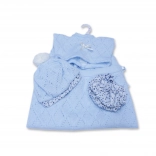 Ez a háromrészes ruha a 26 cm-es méretű újszülött babához a Llorens márkától játék közben finomságot és stílust hoz a babák világába. Spanyolországban készült, ideális a 3 éves kortól.