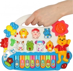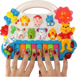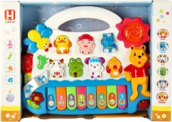 A bájos zongora vidám állatfigurákkal már az első pillanattól leköti a kicsik figyelmét. A választott módtól függően skálát, dallamokat vagy állathangokat játszik le. A billentyűk megnyomásakor felvillan a napocska, ami további interakcióra és felfedezésre ösztönöz.