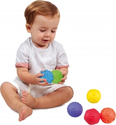 A texturált labdák készlete tartalmaz 6 különféle labdát eltérő textúrával és színekkel, ideális szórakoztató játékhoz és az érzékek stimulálásához.