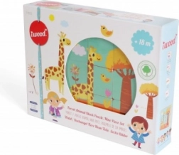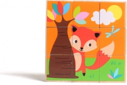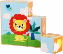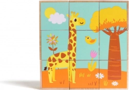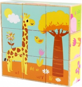 A színes fa építőkockák biztonságos, nem mérgező vízbázisú festékekkel vannak festve, ami gyönyörű és élénk színeket eredményez. Minden kocka hat oldalán egy aranyos állat képének egy részlete található. A kihívás abban rejlik, hogy a kockákat úgy rendezd el, hogy egy teljes képet alkossanak. Kilenc kocka hat különböző képet képes kirakni.
