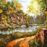 - Motívum: tanyaház a folyónál – megnyugtató, részletgazdag jelenet