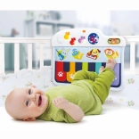 A kiságyra szerelhető zongora úgy lett tervezve, hogy biztonságos és puha legyen, miközben kellemes hangokat ad ki, amelyek felkeltik a gyermek figyelmét. A gyermek játszhat a kiságyban ülve vagy fekve is, a színes hangjegyek lábbal történő megnyomásával. Ez a játék három játékmódot kínál, lehetőséget biztosítva a zongora hangjának és további három hangszer: gitár, hárfa vagy trombita hangjának választására.