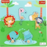 A közkedvelt FISHER-PRICE fa beillesztő kirakó remek választás az első játékos tanuláshoz. Az öt masszív elem fa fogantyúkkal a legkisebb kezek számára is könnyen megfogható, és motiválja a gyerekeket az ismételt próbálkozásra és felfedezésre. A mélyedésekkel ellátott alaplap és a fekete-fehér grafika segít gyorsabban megérteni, melyik alak hová illik.