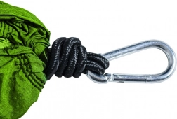 A praktikus hordtáskának köszönhetően a függőágy könnyen összecsukható és szállítható. Kinyitás után a táska tárolóhelyként is szolgál apró tárgyak számára.