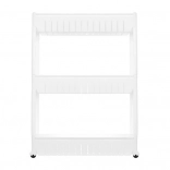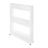 Ez a mobil konyhai polc kerekeken tökéletes a szekrények közötti keskeny terek kihasználására. Tartós műanyagból készült, három mély polcot tartalmaz a szükséges tárgyak rendszerezésére.