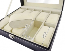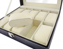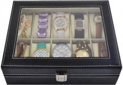 Ez az elegáns óra- és ékszerrendező esztétikus és univerzális megoldást kínál az órák vagy ékszerek gyűjteményének rendszerezésére. Tíz különálló rekesszel védi a tartalmat a sérülésektől, miközben hatékonyan kiemeli szépségét.