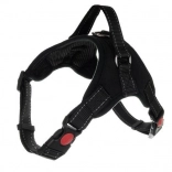 Kényelmes és biztonságos, nyomásmentes M méretű kutyahám strapabíró poliészterből, pamut párnázással. Biztosítja az egyenletes nyomáseloszlást, a könnyű állítást nyakon és mellkason, fényvisszaverő elemeket a láthatóságért, valamint erős fogantyút pórázkarikával. Ideális mindennapi sétákhoz, tréninghez és utazáshoz, 30 kg-ig terjedő testsúlyú kutyáknak.