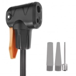 Univerzális, kétportos fej gyors rögzítő karral, amely autó- és kerékszelepekhez is illeszkedik. A készletben tűszelep labdákhoz és 2 kúpos fúvóka matracokhoz és egyéb felfújható eszközökhöz.