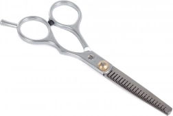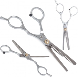 Ezek a professzionális fodrászati ritkító ollók nemcsak szakembereknek, hanem lelkes amatőröknek is készültek. Az ergonomikus kialakításnak köszönhetően kényelmesek és jól illeszkednek a kézbe. A magas minőségű rozsdamentes acél garantálja a hosszú élettartamot, és a mikrofogazott él sima vágást tesz lehetővé.