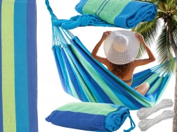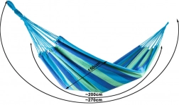 Ez a csíkos függőágy ideális választás kertbe, teraszra, erkélyre és beltérbe is. A légáteresztő pamut–poliészter keveréknek köszönhetően kellemes tapintású, tartós és könnyen tisztítható. Pillanatok alatt felakasztható két fa közé vagy állványra, és már élvezheti a nyugodt ringatózást.