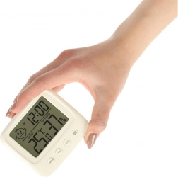 A páratartalom mérése mellett a készülék a hőmérsékletet is méri, LCD kijelzője pedig órát és ébresztő funkciót is tartalmaz, így ez a termék több eszközt is képes kiváltani, helyet és időt takarítva meg.