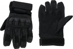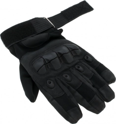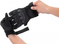 Ezek a fekete taktikai kesztyűk kihívást jelentő körülményekhez készültek. A tenyéren található rétegzett megerősítések növelik a biztos fogást és védik a leginkább igénybe vett részeket a kidörzsölődéstől vagy a vágásoktól. A kézfej keményebb párnázása védi az ujjperceket az ütésektől, míg az állítható csuklópánt stabil, biztonságos illeszkedést nyújt kellemetlen elmozdulás nélkül.