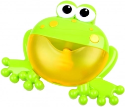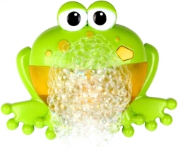 A levehető tartályt megtöltöd vízzel és habfürdővel, megnyomod a gombot, és a béka buborékáradatot fúj a vidám csobbanáshoz.