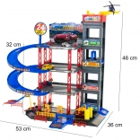 A többszintes parkoló garázs számos szinttel van felszerelve a parkoláshoz és a játékhoz, ami lehetővé teszi, hogy ne csak a készletben lévő kisautókat, hanem a gyermek más járműveit is elhelyezze és tárolja. A kézi vezérlésű felvonó valósághű élményt nyújt, míg a benzinkút és a mosó interaktív lehetőségeket kínálnak.