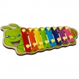 Ez a színes gyerek xilofon ideális első hangszer. A nyolc, hangolt fém lamella szivárványszínekben ösztönzi a természetes kíváncsiságot, és játékos módon fejleszti a zenei hallást és a ritmusérzéket. Elég egy finom koppintás az ütővel, és felcsendül a tiszta hang – az ütés ereje befolyásolja a hangerőt.