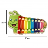 A hernyó dizájn első pillantásra megragadja a figyelmet, és hosszú időre játékra csábít. A hangszer támogatja a koncentrációt, a türelmet és a kreativitást, miközben segít a gyerekeknek megismerni a színeket és egyszerű dallamokat összeállítani.