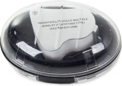 Ez az összecsukható ékszerésznagyító precíz 30× (22 mm) és 60× (12 mm) nagyítást kínál az apró tárgyak részletes vizsgálatához. Az integrált LED-diódák egyenletes megvilágítást biztosítanak árnyékok nélkül, így a kép tiszta és jól olvasható gyengébb fényviszonyok mellett is. A masszív alumínium burkolat védi a lencséket, a kompakt méretek pedig megkönnyítik a hordozást.