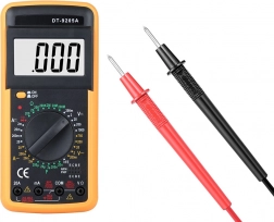 - DT-9205A multiméter, mérővezetékek, 2× AAA elem, gyári csomagolás