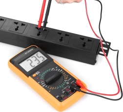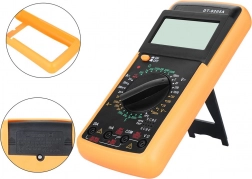 Univerzális DT-9205A digitális multiméter nagy, könnyen olvasható LCD kijelzővel, amely pontos mérést kínál egyen- és váltófeszültségből/áramból, ellenállásból, kapacitásból, valamint diódatesztet, folytonosságvizsgálatot és hFE tranzisztor mérést. A masszív védőtok, a praktikus kitámasztó és az automatikus kikapcsolás megbízható eszközzé teszik műhelybe és otthonra egyaránt.