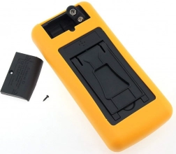 A gumiborítás védi az ütésektől, a beépített kitámasztó növeli a kényelmet. A csomagban mérővezetékek és elemek találhatók az azonnali használathoz.