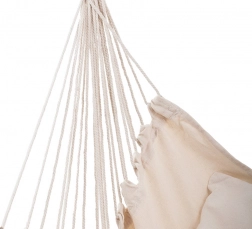 Stílusos, brazil típusú hintaszék, amely nyugalom szigetévé varázsolja az erkélyt, a teraszt vagy a nappalit. A tartós szövet erős pamutból poliészter keverékkel kellemes tapintású, légáteresztő és egyben strapabíró. A széles fa rúd nyitva tartja az ülőfelületet, növeli a stabilitást és megakadályozza a csavarodást.
