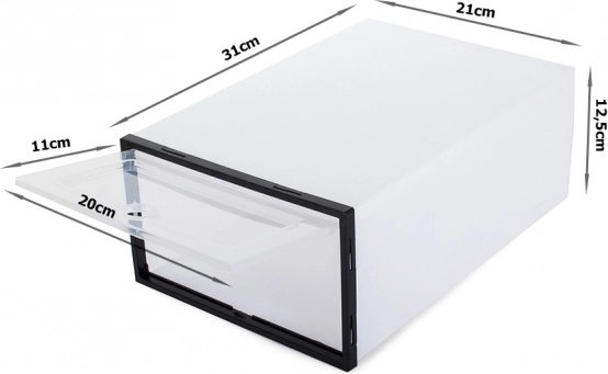 Rendezze cipőit okosan és stílusosan. Ez a műanyag cipősdoboz felnyitható, átlátszó ajtóval rendelkezik, így a tartalom első pillantásra látható. A szellőzőnyílások megakadályozzák a nedvesség bennrekedését és a kellemetlen szagokat. Ha épp nincs rá szükség, egyszerűen laposra összehajtható.