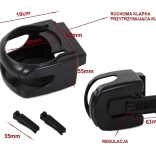A csúsztatható alsó sín lehetővé teszi a tartó dőlésszögének beállítását, így az ital mindig kéznél van, és nem zavarja a szellőzés vezérlését.