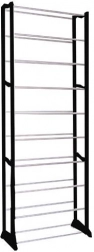 Praktikus cipőtartó 10 polccal, amely akár 50 pár lábbelit is elbír, és rendezetten tartja az előszobát és a gardróbot. Könnyű, mégis stabil felépítés műanyag oszlopokkal és alumínium csövekkel: könnyű összeszerelés, állítható szintszám és mindössze 25 cm-es mélység a maximális helykihasználásért.