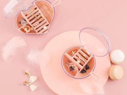 Kompakt, utazáshoz készült, kerek ékszertartó átgondolt rekeszeléssel gyűrűkhöz, fülbevalókhoz és nyakláncokhoz. Az átlátszó fedélnek köszönhetően azonnali rálátást ad, a kivehető középrész megkönnyíti a rendszerezést, a pánt pedig egyszerűvé teszi a hordozást. Könnyen tisztítható, utazáshoz és otthonra egyaránt kiváló.