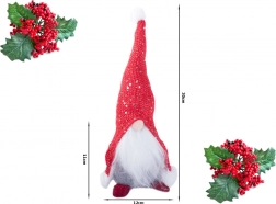Ez az aranyos karácsonyi manó ideális dekoráció minden otthoni sarok számára. Hímzett sapkája, amely csillogó flitterekkel van borítva, tetszőlegesen alakítható, így minden szobának egyedi varázst kölcsönöz. Vidám megjelenés nagy orr, hosszú szakáll és szem elé húzott sapka személyiséget ad a figurának.