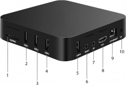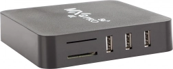 A készülék Wi‑Fi-t kínál vezeték nélküli kapcsolathoz és Ethernet-et a stabil hálózathoz, gazdag csatlakozási lehetőségekkel (4× USB, HDMI, AV, SD/MMC foglalat) és külső meghajtók támogatásával FAT16/FAT32/NTFS. A 11,5 × 11,5 × 2,5 cm-es kompakt méret és a halk működés bármely nappaliba illik.