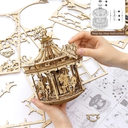 Il modello contiene 384 pezzi tagliati con precisione, che creano l'impressione di una classica giostra in legno con decorazioni ricche.