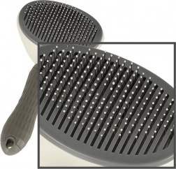 Questa spazzola è dotata di denti flessibili con estremità arrotondate che offrono un effetto massaggio delicato e sono rispettosi della pelle. L'impugnatura ergonomica facilita l'uso prolungato senza affaticamento. Scegli il meglio per il tuo cane o gatto e opta per una spazzola che offra loro cura confortevole ed efficace.