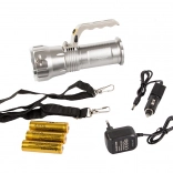 Le batterie agli ioni di litio 18650 garantiscono un uso prolungato e la torcia dispone di una porta di ricarica coperta in gomma.