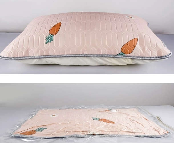 Dopo l’aspirazione, i sacchetti sottovuoto riducono notevolmente il volume degli oggetti riposti, così nell’armadio e in valigia entra molta più biancheria e abbigliamento.