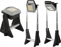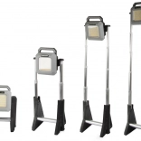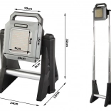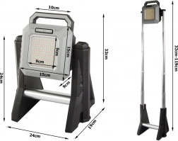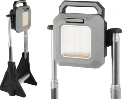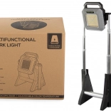 Proiettore telescopico a LED ricaricabile con intensità della luce regolabile da 750 a 3000 lumen, ideale per l'illuminazione di magazzini, officine, cortili o durante le escursioni. È resistente, portatile e pratico.